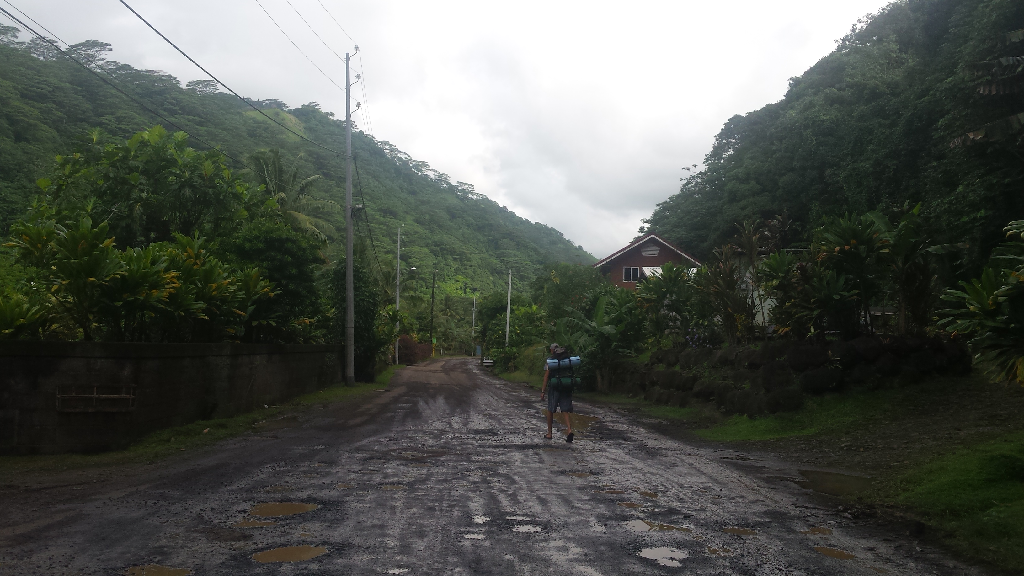 Wioska do której wchodzimy jest drugą największą na Polinezji, ale liczącą sobie zaledwie 4 tys. mieszkańców. Ciężko sobie to trochę wyobrazić, ale takie są tutaj realia. Pierwsze wrażenia wydają się bardzo smutne, a wyspa jest tą najbrzydszą. Ta myśl bardzo, która jest subiektywna, ze względu na dementora czuwającego nad moją głową, w jakimś stopniu jest na pewno prawdziwa. Chodząc i wysysając energię z otoczenia, niemal rezygnujemy z wycieczki po wyspie. Z ciężkim sercem, zmuszamy się do pojechania do pierwszej atrakcji: trzech wodospadów. Trekking jest cudowny, widoki ładne, a każdy następny wodospad coraz to lepszy. U szczytu, przy ostatnim z nich, biorę zimną, orzeźwiającą kąpiel, po której wszystkie smutki odchodzą. Już bardziej pozytywnie nastawieni, decydujemy się na kontynuację wycieczki i łapiemy stopa do punktu archeologicznego. Są to jedne z najważniejszych ruin w całej Polinezji, ale tego dnia wyglądają dla mnie jak kupa poukładanych kamieni, a większą moją uwagę zwracają dwa młode psy, z którymi bawię się, zamiast zwiedzać.
