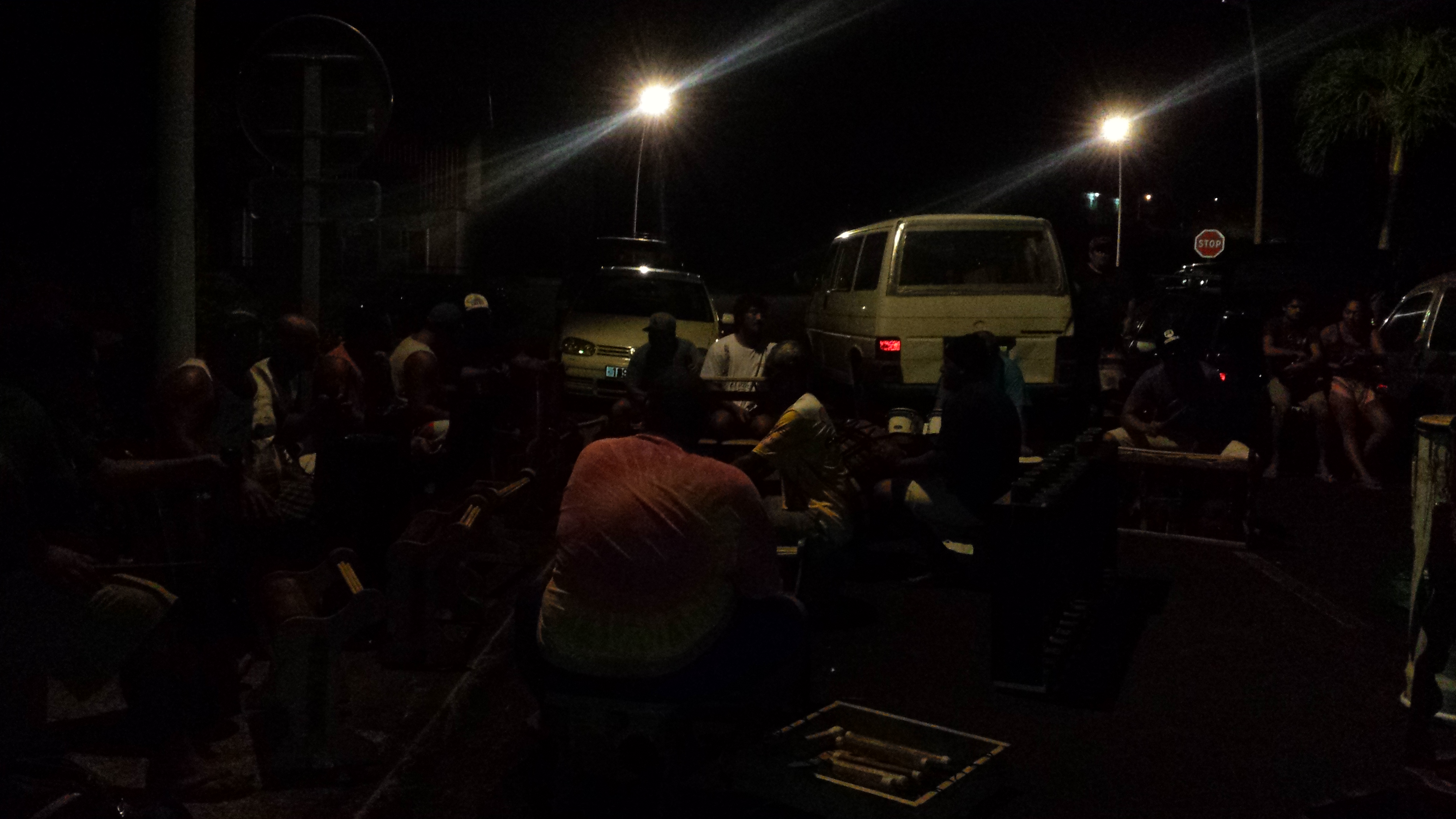 Gdy docieramy do głównej drogi zaczyna się już robić ciemno. Kierowca, który się nam zatrzymuje jest kompletnie pijany, o czym siedząc na pace uświadamiamy sobie, dopiero gdy robi on pauzę na piwo. Będąc wstawionym jeździ dużo szybciej niż przeciętny kierowca i wchodzi w zakręty mało pewnie. Krzyczymy mu cały czas żeby zwolnił, a ostatecznie wysiadamy bojąc się o własne życie kilka kilometrów przed celem. Mamy jednak szczęście i jeszcze tego dnia łapiemy ostatni transport do miejscowości Taravao, która łączy dwie części wyspy: Tahiti Nui wraz z Tahiti Iti. Na obrzeżach miasteczka słyszymy narastające dźwięki bębnów. Tak, to jest idealne miejsce na kolację. Idziemy tam! Na miejscu patrzymy na grupkę 20 ludzi walących w skórę naciągniętą na kawałku drewna. Siedzą oni w kółku, a my siadamy obok nich, wyciągamy kuskus z tuńczykiem i wcinamy. Rytm jest bardzo przyjemny, ale pozwalają nam go nagrać dopiero jak mówimy, że jesteśmy z Polski. Bez wątpienia musi to być ich popisowy numer przygotowany na zbliżający się festiwal muzyki i tańca.