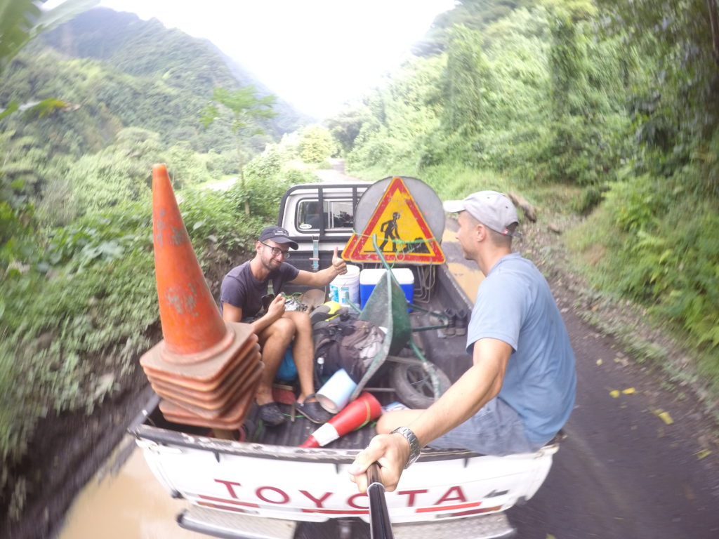 Termometr łapie stopa 10 min, co na Polinezję to bardzo długi czas oczekiwania. Robimy zmianę i zatrzymuje się na mój kciuk drugie przejeżdżające auto. Przypadek?
